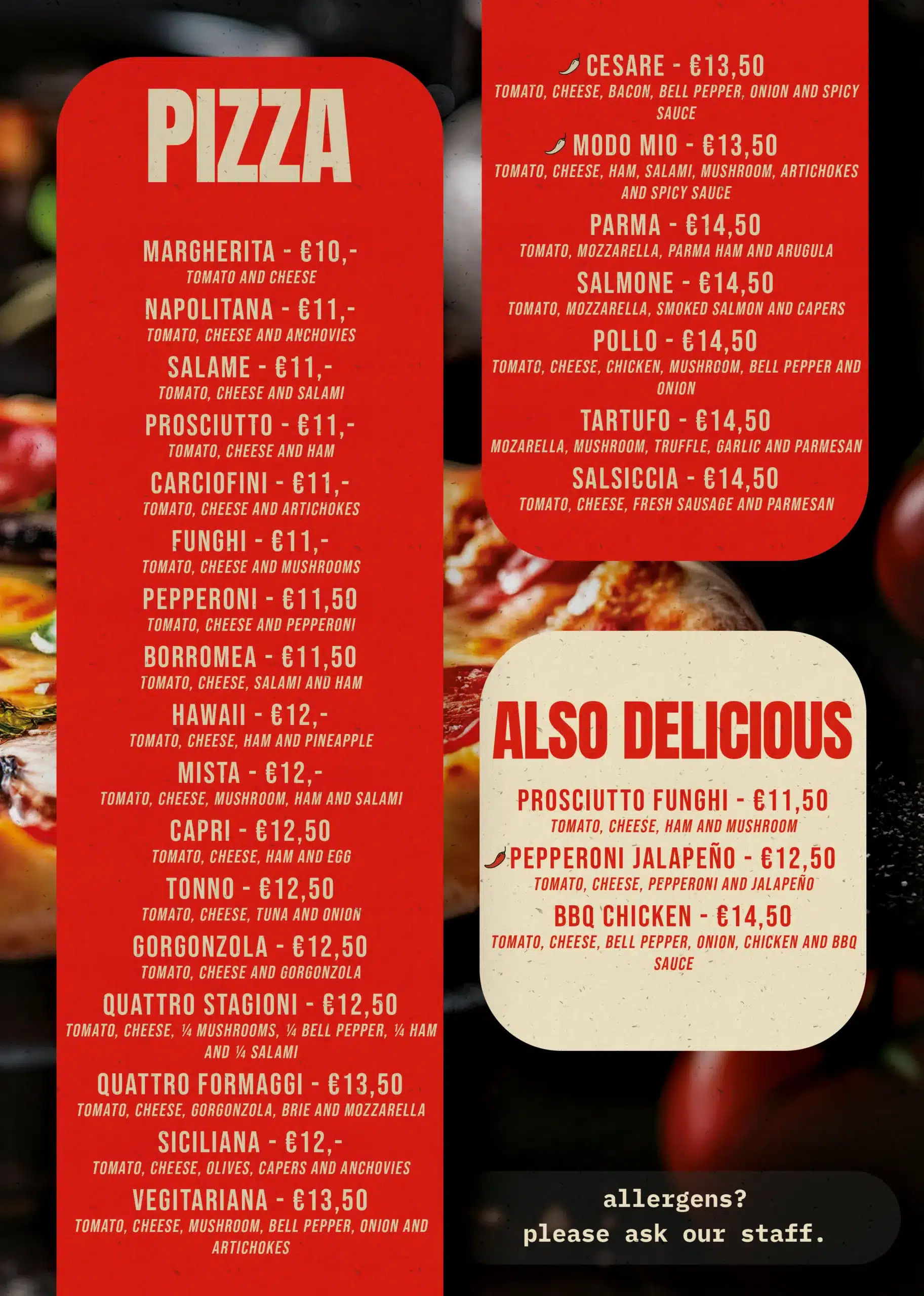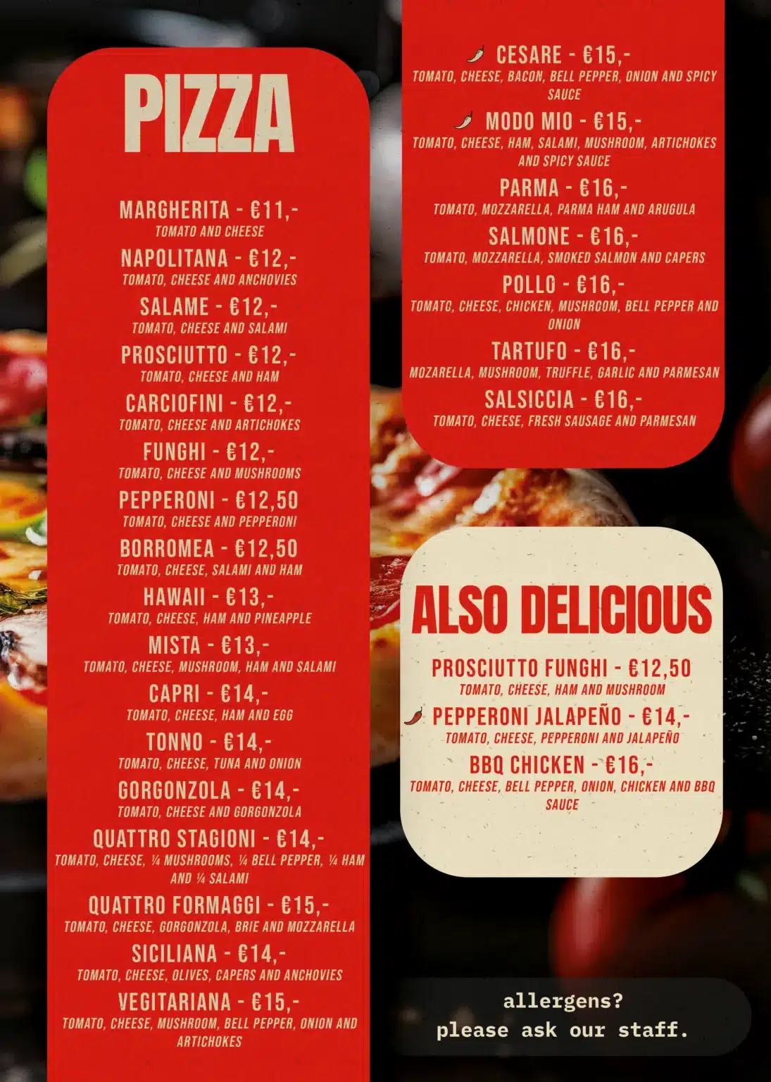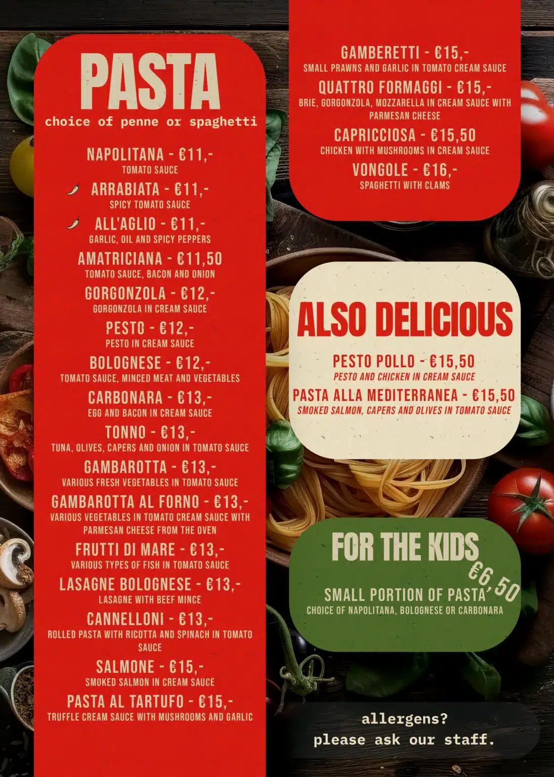 Buon cibo, Buon vino, Buoni amici. Slechts een beperkt aantal tafels beschikbaar — Reserveer vandaag nog!Openingstijden Maandag - Dinsdag - Woensdag: GeslotenDonderdag: 17:00–21:30Vrijdag: 17:00–21:30Zaterdag: 16:30–21:30Zondag: 16:30–21:00 Contact Akkerstraat 94811JL BredaNoord-Brabant 06-34014697 contact@dolceesalato.nl